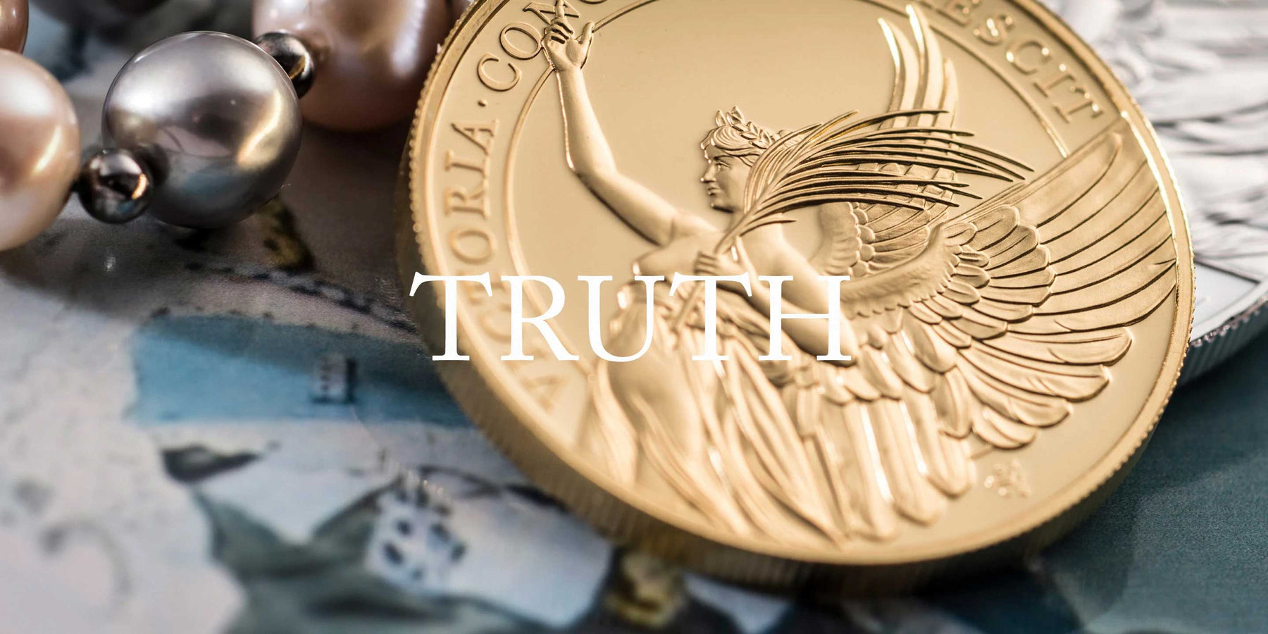 Featuring a design inspired directly from the Victorian Memorial, the second coin representing Truth will depict a glad-winged figure of Truth, holding up a mirror to Nature, standing between a child bearing a palm-branch and a seated woman searching in a scroll for the truth.